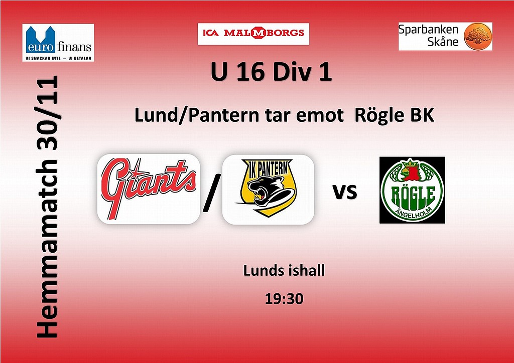 Missa inte chansen att se U 16 hockey i Lund. För första gången den här säsongen spelar Lund/Pantern U 16 i Lunds ishall. Rögle står för motståndet och matchen startar klockan 19:30, kom ned till hallen och stötta laget. Vanligtvis tränar våra U 16 spelare tillsammans med Pantern och matcherna spelas i Kirsebergs ishall. I kväll är dock ett undantag, ta chansen och se U 16-hockey i Lund.