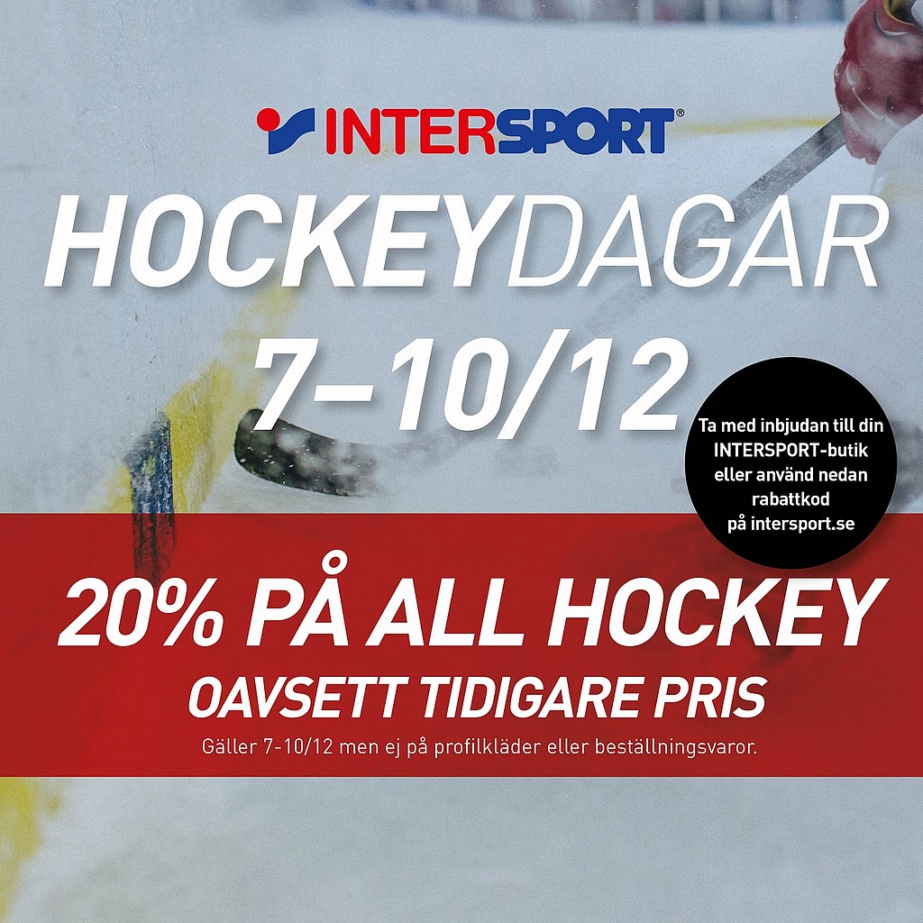 Tillsammans med Intersport bjuder vi nu in till VIP-dagar på Intersport. Som medlem i Lund Giants får du 20% rabatt på hela hockeysortimentet oavsett