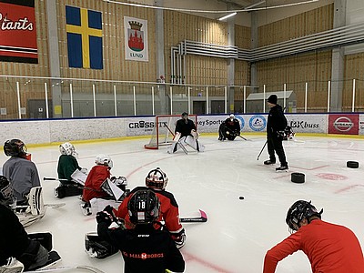 Målvakterna samlades i morse för teori och ispass med Mikael Sandberg som har Sampans goaltending och som till vardags arbetar med Oskarshamns A-lags och juniormålvakter. Målvakterna drillades i teknik och grunder inför säsongen. I o m målvaktsdagen känner vi att våra målvakter också fått en flygande start på säsongen.