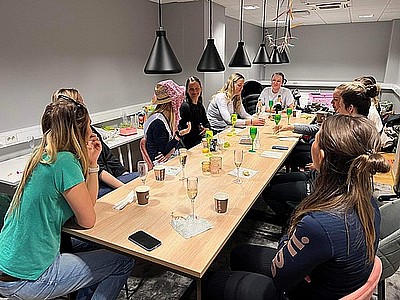 Det började med frukost i Arenan och därefter blev det ombyte till hockeymundering. Väl på isen blev det lite uppvärmning, ett par hockeyövningar och till slut spel. Vita laget vann den här gången, till den blivande bruden Sannas stora förtet. Det var väldigt lyckat och möhippegänget var väldigt nöjda. Vi hoppas att tjejerna kommer tillbaka och spelar mer hockey. Vi tog upp att vi saknar damlag, vilket höjde ett par ögonbryn efteråt.