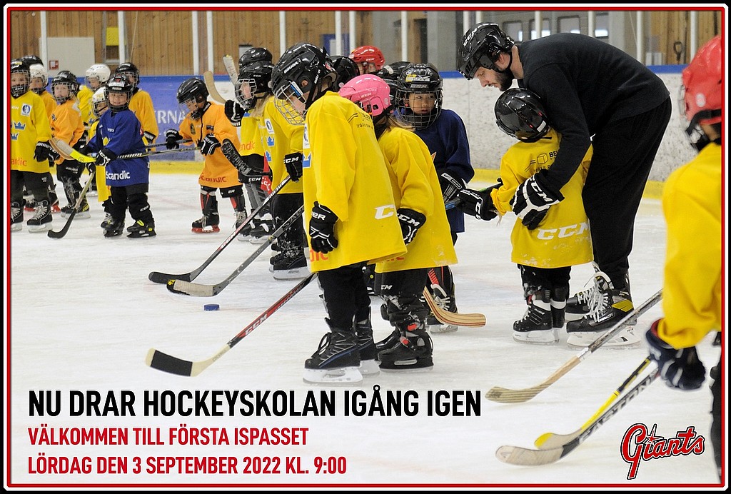 Hockeyskolan går på is lördagen tden 3 september kl 09.10 för gula gruppen och 10:20 för blå och gröna gruppen.