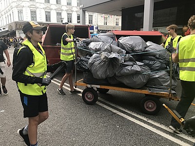 Första dagen av städning på Malmöfestivalen! Pengar tjänas in till laget samtidigt som det är finfin teambuilding!