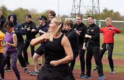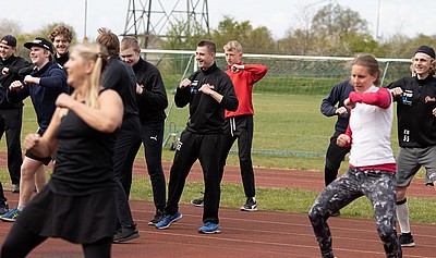 Zumba med J-18/J20 vilket hela veckan gått under täcknamnet Koordinationsträning. Allt för att få så många som möjligt till passet! 😉😃