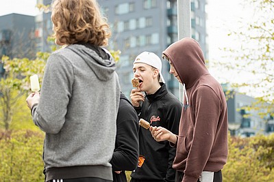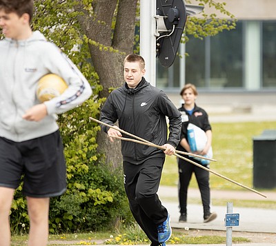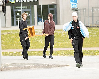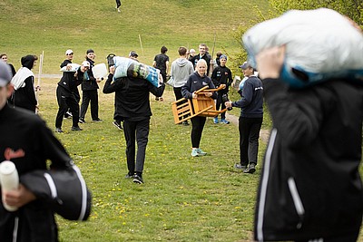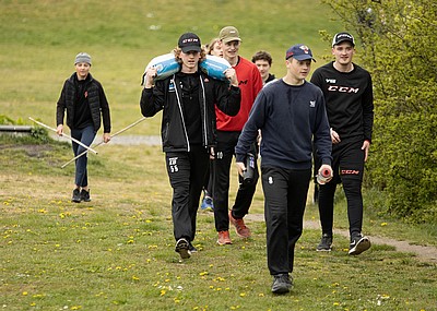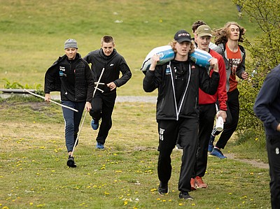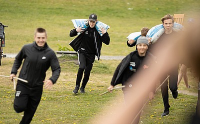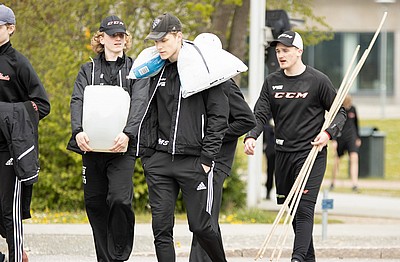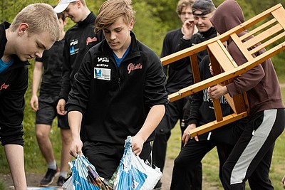 Sen gällde det att samarbeta i sitt lag och transportera ”skit”, tungt som lätt, från ishallen till St Hans Backar. Väl där blev lagen underkända för fusk och fick då göra om genom att ta allt tillbaka till ishallen igen. Allt på kortast möjliga tid.